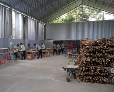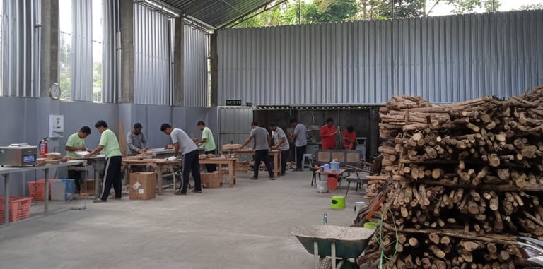 Gross Weight: Given the density of coffee wood, a carton of this size filled with M or L sizes will weigh approximately 5 - 8 kg, which is ideal for safe stacking inside a shipping container.
